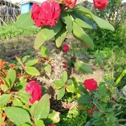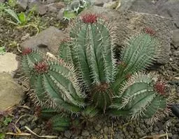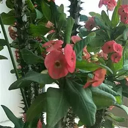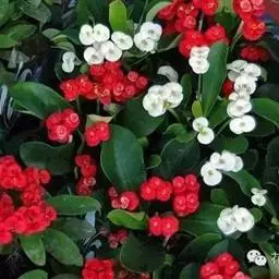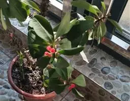 虎刺梅:别称铁海棠,是蔓生灌木植物。茎多分枝,长60-100厘米,直径5-10毫米,具纵棱,密生硬…