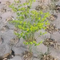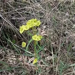 续随子(学名:Euphorbia lathylris L),又称千金子,为大戟科、大戟属下的一种二年生草本。全株无毛,根柱状,茎直立。叶交互对生,线状披针形,全缘。花序单生,近钟状。雄花多数,雌花1枚。蒴果三棱状球形,光滑无毛。种子柱状至卵球状,褐色或灰褐色。花期4-7月,果期6-9月。产中国大部分省区,栽培或逸为野生广泛分布或栽培于欧洲、北非、中亚、东亚和南北美洲。全草有毒。具药用价值。 续随子种子含油量一般达45%左右,高的可达48%以上。续随子油的脂肪酸组成与柴油替代品的分子组成相类似,其主要成分是倍半烯萜,富含巨大戟二萜醇3一十六烷酯,植株乳汁富含大量烯烃类碳氢化合物,是生产生物柴油的理想原料之一。