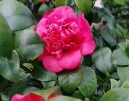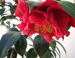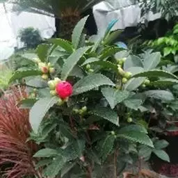山茶(学名:Camellia japonica L. ):是双子叶植物纲山茶科植物。灌木或小乔木,高9米,嫩枝无毛。叶革质,椭圆形,先端略尖,基部阔楔形,上面深绿色,干后发亮,无毛,下面浅绿色。花顶生,红色,无柄;苞片及萼片约10片,花瓣6-7片,外侧2片近圆形。蒴果圆球形,直径2.5-3厘米,2-3室,每室有种子1-2个,3爿裂开,果爿厚木质。花期1-4月。