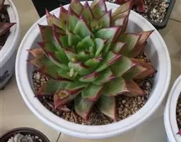 叶形和株型外观和蓝姬莲及极其相似,爱斯诺易出侧芽爆盆呈群生状。叶子密集,蓝绿色,排成呈莲座状,具明显的叶尖,匙形叶,叶面稍内凹,背部稍隆起,出状态的肉肉叶缘泛粉红至红紫色。