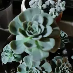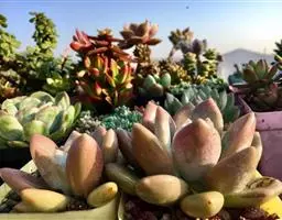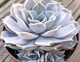 蓝石莲是景天科、拟石莲花属的多肉植物。茎部粗壮,成熟植株茎部木质化。叶片莲座型密集排列,株径不会很大,…