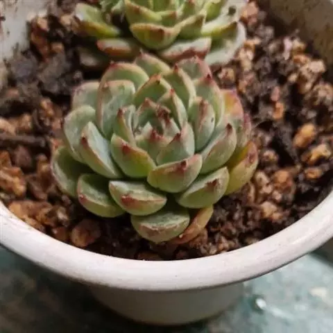女雏是景天科石莲花属的多肉植物。特征是小巧的株形和橙粉色叶缘。极易生侧芽,…