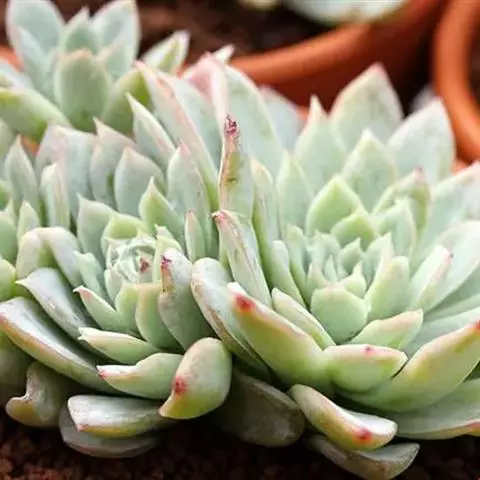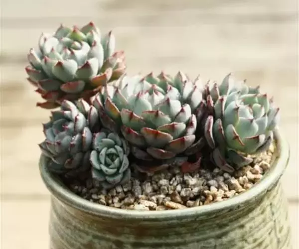小红衣是景天科、拟石莲花属的一种多肉植物。叶片匙形,扁平细长,叶表具白粉,有明显的半透明边缘,…