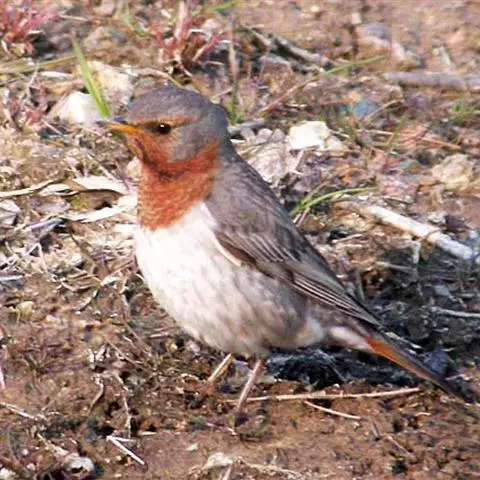 幼鸟下体有密集的褐色斑点,直到第一次换羽毛它才能长出成鸟的红胸斑。
