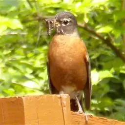 所谓北美“知更鸟”其实是画眉的一种,是比知更较大的一种候鸟,它和真的知更比较,不过有点儿相似罢了。不过,和欧洲的知更一样,它倒是随遇而安的鸟类。知更原是林中客,却能在人类大量砍伐林木之余设法生存下来,或者移居到不曾去过的地方。它也和英国的知更一样,驯良而不惧人,经常出现在公园与庭院之中。