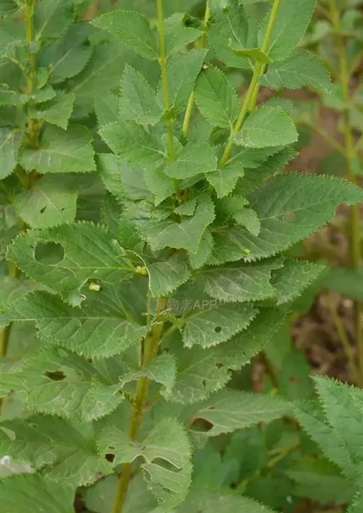 北玄参(学名:Scrophularia buergeriana Miq.)是玄参科、玄参属多年生草本植物。植株高大,100-150厘米。根肉质肥厚,呈圆柱形或纺锤形,淡黄色,有多数细根。茎直立,四方形。单叶对生,叶片长卵形,边缘有锐锯齿。聚伞花序,密集排列于枝顶端呈穗状。蒴果卵圆形。花期7-8月,果期8-9月。