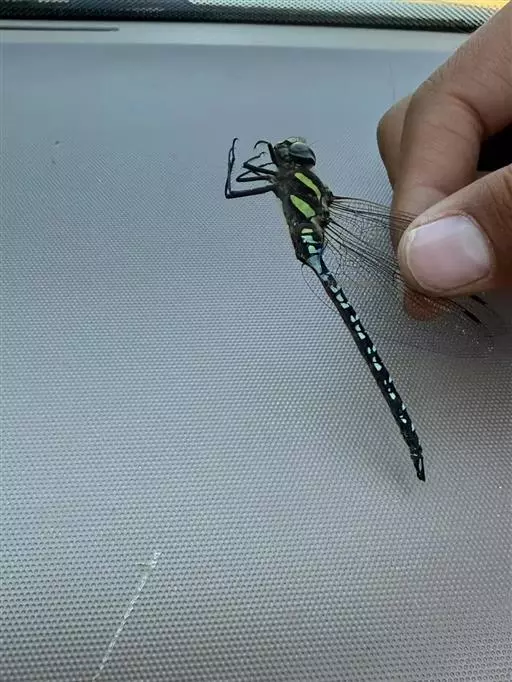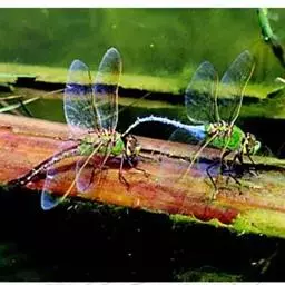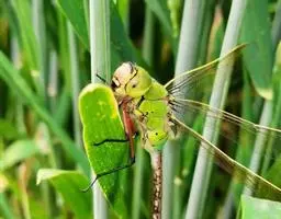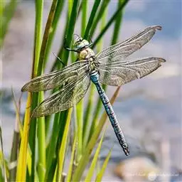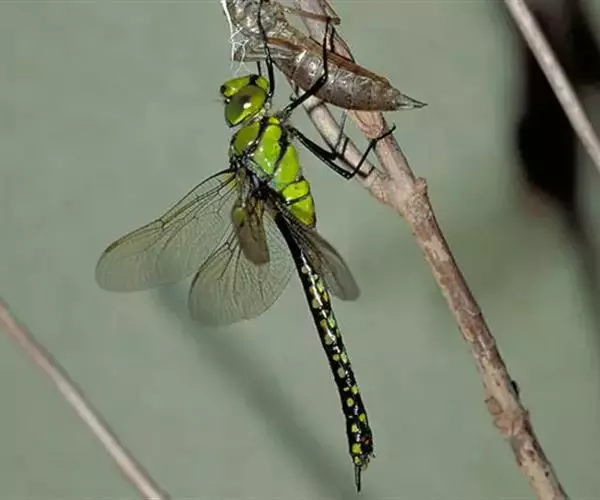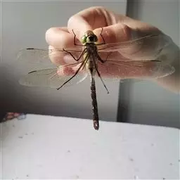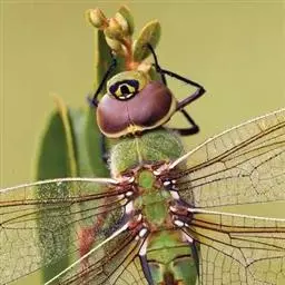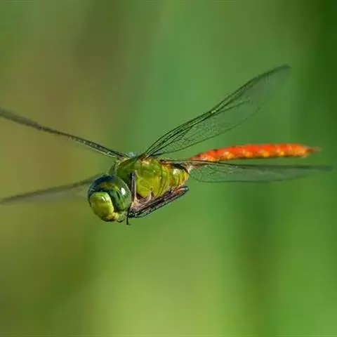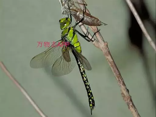 黑纹伟蜓 雄性腹长57mm,后翅长50mm,部下唇黄色,中叶端具黑缘;上唇黄色,具宽的黑色前缘;前唇基黄绿色,前缘中央淡褐;后唇基绿色,前缘两侧具很细的褐色缘;额绿色,上额具1黑色“T”形斑纹。胸部合胸背前方绿色,无斑纹,合胸侧面黄绿色,具黑色条纹,足黑色,翅透明,翅痣黄褐色。 成虫后,未成熟的蜻蜓身体颜色呈现绿色,成熟后的蜻蜓身体呈现蓝色。