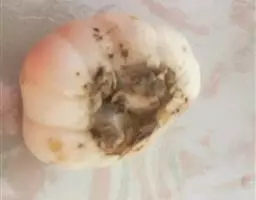 症状:贮藏期间,在鳞片腐烂斑点上长出白色的斑点,然后会长出绒毛状的绿兰色的斑块。被侵染后,甚至在-2℃的低温时,腐烂也会逐步增加。病菌将最终侵入鳞茎的基盘,使鳞茎失去价值或使植株生长迟缓。虽然受感染的鳞茎看起来不健康,但只要鳞茎基盘完整,那么在栽种期间植株的生长将不会受到影响。种植后,侵染不会转移到茎杆上,也不从土壤中侵染植株。