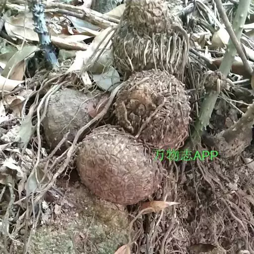 藤本植物,粗壮,长可达20米左右。块茎一般生长在表土层,为卵形、球形、长圆形或葫芦状,外皮黑褐色,凹凸不平,断面新鲜时红色,干后紫黑色,直径大的甚至可达20多厘米。茎绿色,无毛,右旋,有分枝,下部有刺。
