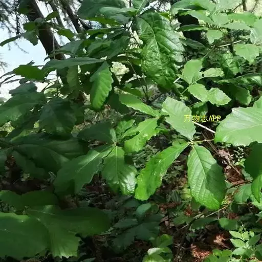落叶乔木或灌木状,高达20米,树皮灰褐色,深纵裂。小枝密生灰色至灰褐色绒毛;冬芽卵状圆锥形,芽长4-6毫米,芽鳞多数,被疏毛。叶片倒,卵形、椭圆状倒卵形,长7-15厘米,宽3-8厘米,顶端钝或短渐尖,基部楔形或窄圆形,叶缘具波状锯齿或粗钝锯齿,幼时两面被灰黄色星状毛,侧脉每边8-12条,叶背支脉明显;叶柄长3-5毫米,被棕黄色绒毛。雄花序长6-9厘米,花序轴被绒毛,雌花序长1-4厘米,生2-4朵花,壳斗杯形,包着坚果约1/3,直径0.8-1.1厘米,高4-8毫米;小苞片卵状披针形,排列紧密,在口缘处稍伸出。坚果长椭圆形或卵状长椭圆形,直径0.7-1.2厘米,高1.7-2厘米,无毛,果脐突起。花期4月,果期10月。