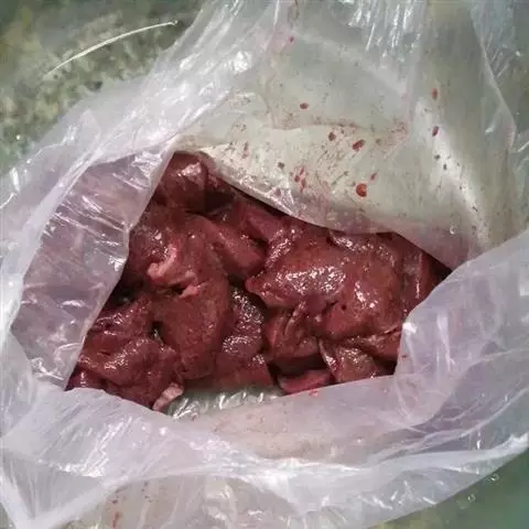 1. 把瘦牛肉去筋洗净,切成两个整齐的大块放入深盘内;