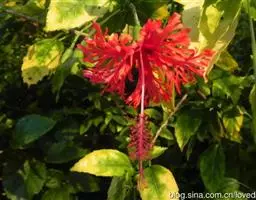直立亚灌木,高约1米,小枝被星状长柔毛。叶二型,下部生的宽菱形至扇形,长2.5-5厘米,宽近似,先端短尖至浑圆,基部楔形,边缘具2齿,上部生的长圆状椭圆形至长圆形,长2-3厘米,两端钝至浑圆,上面疏被星状毛或糙伏毛至几无毛,下面密被灰色星状毡毛;叶柄长5-10毫米,被星状柔毛;托叶钻形,较短于叶柄。花单生或簇生于小枝端,花梗长约1厘米,密被星状粘毛,中部以上具节;萼杯状,长约7毫米,裂片三角形,疏被星状柔毛;花黄色,直径1-1.5厘米,花瓣倒卵形,长约8毫米;雄蕊柱长约5毫米,被长硬毛。果近圆球形,直径约6毫米,分果爿8-9,疏被星状柔毛,具短芒;种子黑褐色,平滑,长2毫米,种脐被白色柔毛。花期6-11月。
