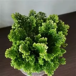 2、垫状卷柏:须根多散生。中叶(腹叶)两行,卵状披针形,直向上排列。叶片左右两侧不等,内缘较平直,外缘常因内折而加厚,呈全缘状。