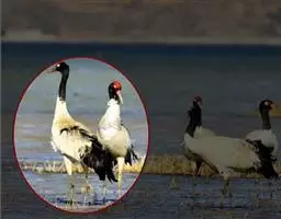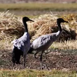 黑颈鹤:是鹤科、鹤属的大型涉禽,体长110-120厘米,体重4-6千克。颈、脚甚长,通体羽毛灰白色,…
