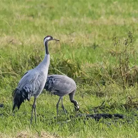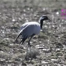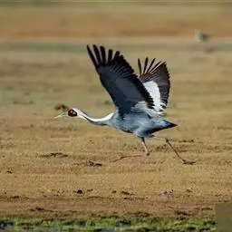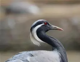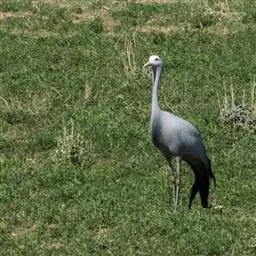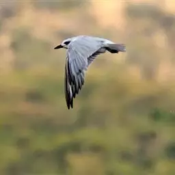 蓑羽鹤大型涉禽,体长68~92厘米,是鹤类中个体最小者。通体蓝灰色,眼先、头侧、喉和前颈黑色,…