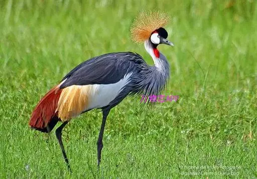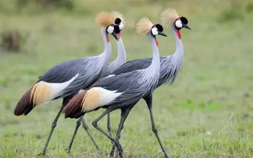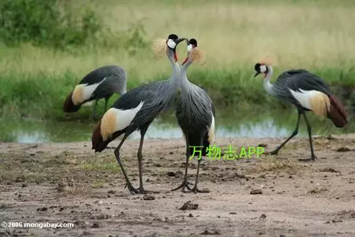 东非冕鹤是大型涉禽。体长127厘米。额部向外凸出,有乌黑色绒羽,…