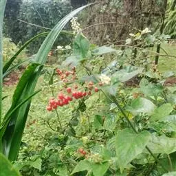 蕾芬,别名数珠珊瑚、小商陆、胭脂草, 半灌木,高30-100厘米。茎直立,枝开展,幼时被短柔毛。
