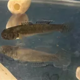 没长大的胭脂鱼幼体,说实话它们的体色的确不怎么让人期待。深褐的底色,体侧有三条黑色宽纹,虽说不上难看,但和成鱼惊艳的红色相比就差太多了。它们值得欣赏的地方是背鳍。胭脂鱼的背鳍很长,尤其幼鱼的背鳍前端更是十分高大,仿佛把整个躯体都拉伸成了山峰形。也正是这个背鳍让它们得到了“一帆风顺”的名字,听着看着都挺吉利。