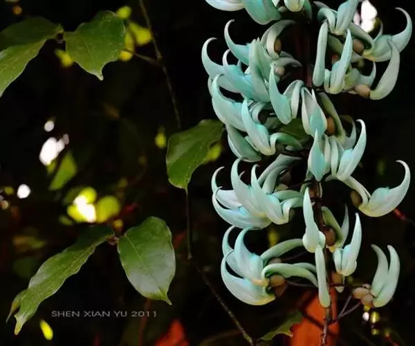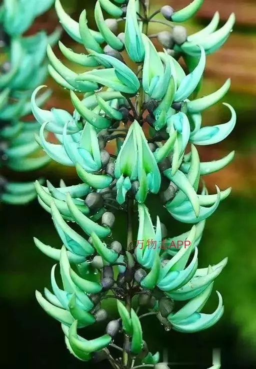 翡翠葛与我们常见的白色禾雀花属同科植物,其花朵比白色禾雀花要小一些,但更精致可爱。蓝绿色的花在自然界本身就比较少见,再加上其特别的花型,更受花友们的追捧。