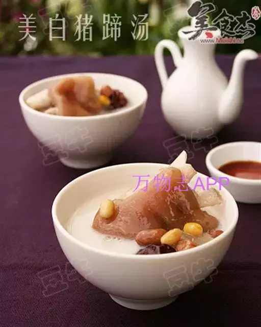 主料:猪蹄半只;黄豆1把;红枣4颗;淮山药18克;花生1把;红皮);蜜枣2颗;枸杞少许。