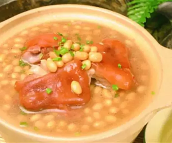 黄豆猪蹄汤是一道药膳。做法简单,营养丰富,适合秋冬季滋补,具有通乳、气血双补、补虚养身等功效。属于乳母食谱,通乳食谱,气血双补食谱,孕妇食谱,补虚养身食谱。