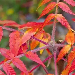 火炬树是漆树科盐麸木属落叶灌木或小乔木;株高,树形不整齐;小枝粗壮,红褐色,密生绒毛;叶轴无翅,…
