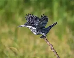 绿鱼狗是佛法僧目翠鸟科的鸟类。成年雄鸟,额头和眼先是黑色,头顶端深绿色呈古铜光泽。翅膀羽毛有白色斑…
