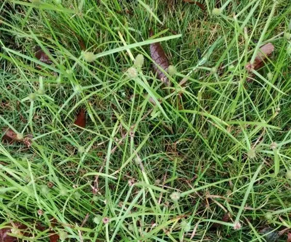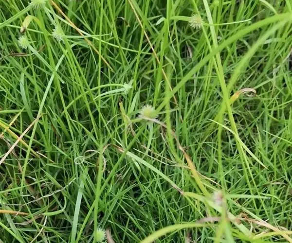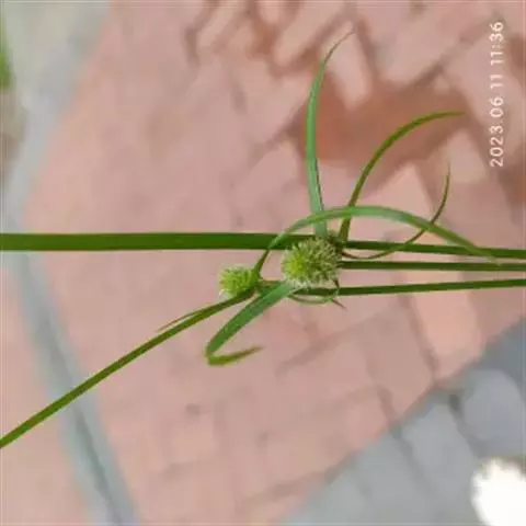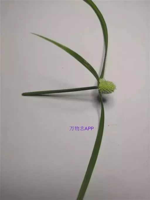 叶状苞片3枚,极展开,后期常向下反折;穗状花序单个,极少2或3个,球形或卵球形,长5-11毫米,宽4.5-10毫米,具极多数密生的小穗。小穗长圆状披针形或披针形,压扁,长约3毫米,宽0.8-1毫米,具1朵花;鳞片膜质,长2.8-3毫米,下面鳞片短于上面的鳞片,白色,具锈斑,少为麦秆黄色,背面的龙骨状突起绿色,具刺,顶端延伸成外弯的短尖,脉5-7条;雄蕊3-1个,花药线形;花柱细长,柱头2,长不及花柱的1/2。
