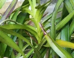 终年都有,高温多雨季节更为猖撅,而以建兰感染尤多。病斑先从叶尖向根茎处延伸,初为褐色,然后逐渐扩大增多,出现许多干黑点,严重时导致整株死亡。防治方法:除积极改菩环境条件外,在发病期内,可先用50%甲基托布津可湿性粉剂800-1500倍液喷治,每7-10天一次;然后再辅以1%等量式波尔多液,每半月一次,连续喷3-5次。