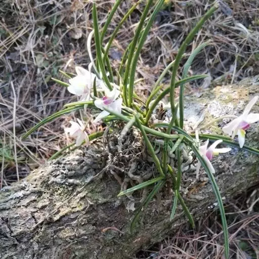 槽舌兰(学名:Holcoglossum quasipinifolium (Hayata) Schltr.):茎长达5厘米,被宿存的叶鞘。叶多数,圆柱形。总状花序腋生,通常具1-3朵花;花开展;萼片和花瓣白色带粉红色,在背面中肋被少数褐红色斑点,多少扭转或边缘波状;花瓣稍斜椭圆形,长1.5-1.6厘米,宽6-7.5毫米,先端钝,基部收狭,具3条脉,其外侧的脉稍分枝,在背面中肋亦隆起呈龙骨状;唇瓣3裂。花期2--9月。