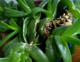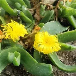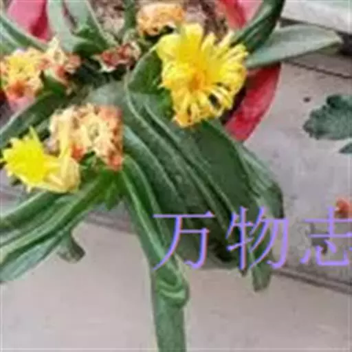 多年生,茎肉质,叉状分枝。叶片舌状或三角状线形,肥厚多肉,鲜绿色,交互对生,紧密排成2列,长约6厘米,宽约1.5厘米,顶端具钝弯钩,基部合生。花顶生,具细长梗,橙黄色,直径约2厘米;花瓣和雄蕊均多数;花托膨大。花期5-6月。