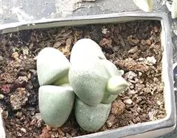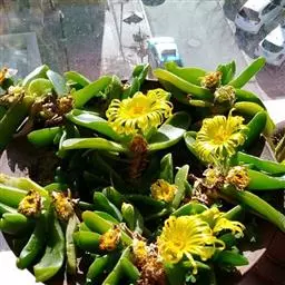 宝绿中文学名弯叶日中花,拉丁文名Mesembryanthemum uncatum Salm-Dyck,又名舌叶花、佛手掌。