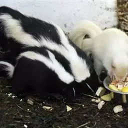 臭鼬是杂食动物,食物包括昆虫、水果、坚果、老鼠之类小型哺乳动物。斯莱特霍姆给“巴斯比”喂食鸡肉,辅以水果和蔬菜。英国《每日邮报》10日援引她的话报道:“如果不加约束,它会钻进狗粮袋里。”