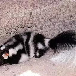 臭鼬(学名:Mephitis mephitis)共有22个亚种,长着一身醒目的黑白相间的毛皮。栖息地区多种多样,包括树林、平原和沙漠地区。它们白天在地洞中休息,黄昏和夜晚出来活动。臭鼬可以放出奇臭的气味,很容易辨别,这种气味常在遇到威胁时释放出来。生活于林地、沟谷和耕地四周。性情温和。杂食性,秋、冬季以野果、小型哺乳类及谷物为食,而春、夏季多以昆虫和谷物等为主。分布于加拿大,墨西哥和美国。