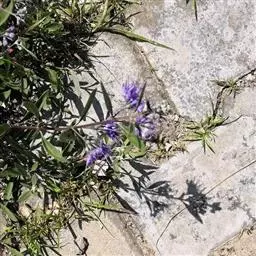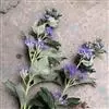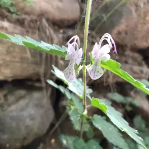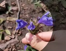 聚伞花序腋生,无苞片和小苞片;花萼钟状,长约3毫米,外面密生灰白色绒毛,深5裂,裂片阔线形至线状披针形,长约1.5毫米;花冠蓝紫色,长约1厘米,外面被短毛,5裂,下唇中裂片较长大,边缘流苏状,花冠管长约5毫米,管内喉部有细长柔毛;雄蕊4枚,几等长,与花柱均伸出花冠管外;子房长圆形,无毛,柱头2裂。蒴果椭圆状球形,无毛,果瓣具翅。花果期8-10月。