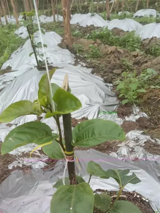 栽苗时要适当剪除老叶,营养袋要破袋取出,不能埋入土中。定苗时用适量腐熟有机肥与沙壤土拌匀,作定植土或盖土。定植时要理顺根系,分层填土,踏紧压实。栽后及时浇根水。新挖的定植穴,栽时苗根颈略高出地平面8-10厘米。栽后理出树盘,并覆盖50×50厘米的小块薄膜。