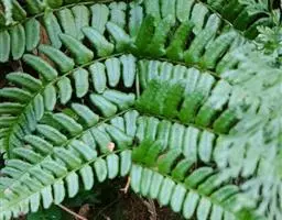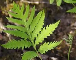叶簇生,叶柄淡褐色至赤褐色,长2-11厘米。粗0.5-2毫米,疏生鳞片及针头状节状毛,中部以下具关节(基羽下位关节);叶片披针形至长圆状披针形,长4-11厘米,宽1.3-3.6厘米,2回羽状深裂或2回羽状;羽切片10-16对,无柄,中部羽片较大,长圆状披针形至三角状长卵形,长0.6-2厘米,宽0.5-1厘米,钝尖头,小羽片或裂片长圆形,基部下延,先端钝,全缘或具波状齿;叶纸质,两面密生淡褐色、针头状节状毛,背面毛中还混生有淡褐色狭披针形鳞片。孢子囊群圆形;囊群盖呈小的分裂的状,边缘具针头状节状毛;孢子囊环带有16-22个增厚细胞组成;孢子周壁褶皱成网状或拟网状,表面密具小瘤状纹饰。