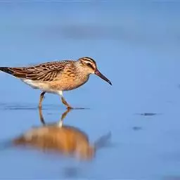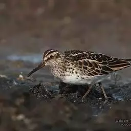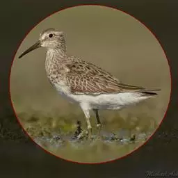 阔嘴鹬是涉禽,体长17厘米。特征为翼角常具明显的黑色块斑并具双眉纹。与黑腹滨鹬平滑下弯的嘴相比,…