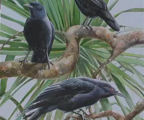 家鸦:体长38-42厘米,是一种体型较大的黑色鸦。雌雄相似,通体黑色具紫蓝色金属光泽枕至后颈、颈侧…