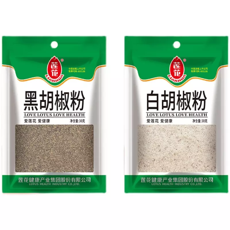 胡椒粉分白胡椒粉和黑胡椒粉两种,白胡椒粉为成熟的果实脱去果皮的种子加工而成,色灰白,种仁饱满,气味较浓,品质较好;黑胡椒粉是未成熟而晒干的实加工而成,果皮皱而黑,气味较淡。两者性情也不同。专家说,黑胡椒粉走里,味重,调味作用稍好;白胡椒粉药用价值更高,走表,辛散作用更好。