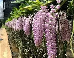 风兰 H.H.Hu):植株高8-10厘米。茎长1-4厘米,稍扁,被叶鞘所包。叶厚革质,狭长圆状镰刀形。…