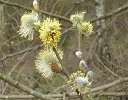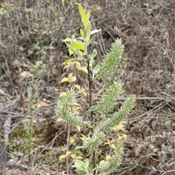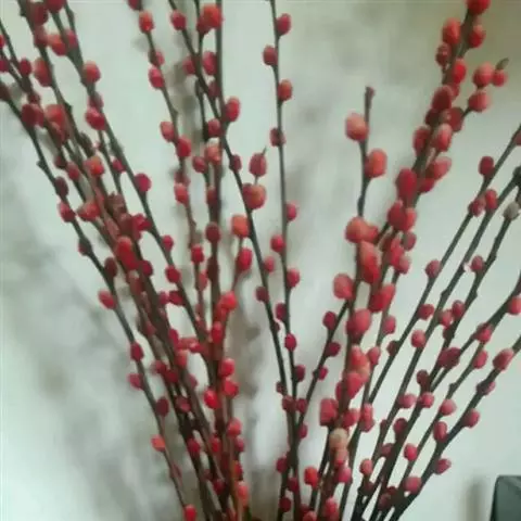 别名银芽柳、银柳。形态特征与细柱柳相似,雄花序更为粗大。