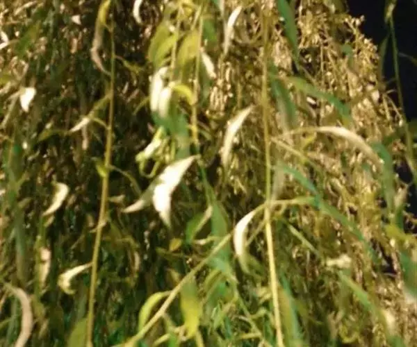 枝干病虫:腐烂病和溃疡病,发病轻时,可在枝干病斑上纵横间隔0.5厘米,割深达木质部的刀痕,然后涂15%的苛性钠或1:10~1:12的苏打水,或甲基托布津。为害柳树嫩梢及叶部的病害有杨柳褐斑病(Seporia populicola)、柳锈病(Melampsoracokosporioides)和斑枯病(Septoria salicicola)等;虫害有柳蓝金花虫(Plagiodera versicolora),柳青翅金花虫(Basilepta fulvipes),杞柳跳䖬(Altica sp.),柳毒蛾(Stilpnotia candida),柳天蛾(Smerinthus plans),刺蛾(Parasa consocia)等。为害枝干的病害有杨柳腐烂病(烂皮病)(Valsa sordida);虫害有光肩星天牛(Anoplophora glabripennis),星天牛(A. chinensis),柳瘿蚊(Rhabdophaga sp.),柳吉丁虫(Agrilius sp.)等。为害根部的病害有杨柳根癌病(Agrobacterium tume-faciens);虫害有地老虎(Agrotis ypsilon)。对于上述这些病虫害,应以防为主。如选无病虫害的强壮种条繁殖,适当稀植,加强通风,控制灌水,及时排水;播种育苗,要及时间苗、定苗,加强日常的抚育管理,提高抵抗病虫害能力;清除并烧毁病虫害枝干和枯枝落叶,预防病虫孳生。还可用捕杀成虫、幼虫和消灭卵块;保持天敌等方法防治。也可用乐果、敌百虫、杀螟松、亚胺硫磷乳剂、波尔多液等药物防治。