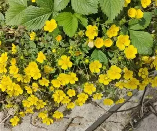 多年生草本。根簇生,极多。花茎多数,丛生,上升或铺散,长8-25cm,有开展长柔毛。基生叶为奇数羽状复叶,有小叶5-7片,稀为9片,连叶柄长5-22cm,叶柄有开展疏柔毛,小叶有短柄或几无柄;小叶片倒卵形、椭圆形或长椭圆形,长0.5-7cm,宽0.4-3cm,先端圆钝或急尖,基部楔形或宽楔形,边缘有多数急尖或圆钝的锯齿,近基部为全缘,两面有平铺疏柔毛,下面沿叶脉毛较密,锯齿边缘有时密被缘毛;茎生叶常有3小叶,小叶与基生叶相似或为长圆形,边缘上部有锯齿而下部全缘,有短叶柄或几无柄;基生叶有膜质托叶,褐色托叶外面有稀疏开展长柔毛,茎生叶有草质托叶,卵形,全缘,外面有平铺疏柔毛。顶生伞房状聚伞花序,多花;花梗细,长1.5-2cm,外面有疏柔毛;花直径1-1.7cm;花萼有长柔毛,副萼片与萼片近等长或稍短,但萼片稍宽;花瓣黄色;花柱顶生,上部大,基部小;花托内部密生细柔毛。瘦果近肾形,直径约1mm,表面有脉纹。花期4-6月;果期6-8月。