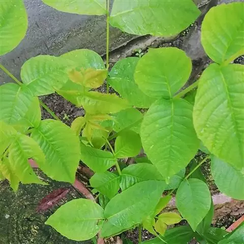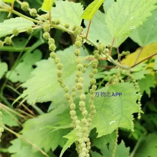 亚灌木或多年生草本;茎高50-150厘米,中部以上与叶柄和花序轴密被短毛。叶 对生,稀互生;叶片纸质,扁五角形或扁圆卵形,茎上部叶常为卵形,长8-12(-18) 厘米,宽7-14(-22)厘米,顶部三骤尖或三浅裂,基部截形、浅心形或宽楔形,边缘 有粗牙齿,上面粗糙,有糙伏毛,下面密被短柔毛,侧脉2对;叶柄长1.5-6(-10)厘 米。穗状花序单生叶腋,或同一植株的全为雌性,或茎上部的雌性,其下的为雄性,雌 的长5.5-24厘米,分枝呈圆锥状或不分枝,雄的长8-17厘米,分枝呈圆锥状;团伞 花序直径1-2.5毫米。雄花:花被片4,椭圆形,长约1毫米,下部合生,外面上部疏 被短毛;雄蕊4,长约1.6毫米,花药长约0.6毫米;退化雌蕊椭圆形,长约0.6毫米。 雌花:花被椭圆形,长0.5-0.6毫米,齿不明显,外面有密柔毛,果期呈楔形至倒卵状 菱形,长约1.2毫米;柱头长1-1.6毫米。花期7-8月。