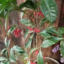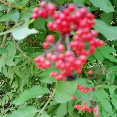 果实红色,近圆形,直径3-4毫米;核2-3粒,卵形,长2.5毫米,表面有小疣状突起。花期4-5月,果熟期8-9月。