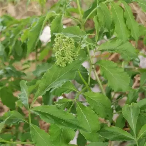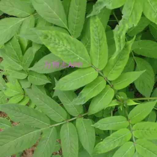 接骨草(学名:Sambucus chinensis Lindl.)是忍冬科,接骨木属高大草本或半灌木,高可达2米;茎有棱条,羽状复叶的托叶叶状或有时退化成蓝色的腺体;小叶片互生或对生,狭卵形,先端长渐尖,基部钝圆,两侧不等,边缘具细锯齿,无托叶,复伞形花序顶生,大而疏散,总花梗基部托以叶状总苞片,纤细,可孕性花小;萼筒杯状,萼齿三角形;花冠白色,花药黄色或紫色;果实红色,近圆形,表面有小疣状突起。4-5月开花,8-9月结果。