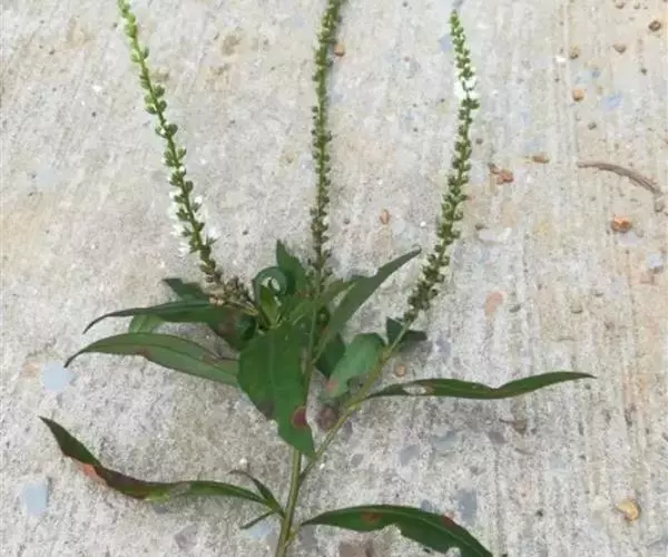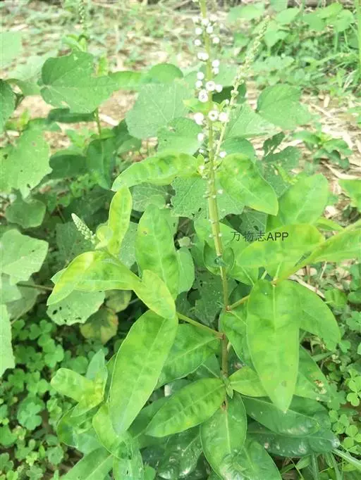 多年生草本,全株无毛。根状茎横走,紫红色。茎直立,高30-70cm,圆柱形,有黑色腺点,基部紫红色,通常不分枝,嫩梢和花序轴具褐色腺体。叶互生,近于无柄,叶片长圆状披针形至狭椭圆形,长4-11cm,宽1-2.5cm,先端渐尖或短渐尖,基部渐狭,两面均有黑色腺点,干后成粒状突起。总状花序顶生,细瘦,长10-20cm;苞片披针形,长2-3mm;花梗与苞片近等长或稍短;花萼长约1.5mm,分裂近达基部,裂片卵状椭圆形,先端钝,周边膜质,有腺状缘毛,背面有黑色腺点;花冠白色,长约3mm,基部合生部分长约1.5mm,裂片椭圆形或卵状椭圆形,先端圆钝,有黑色腺点;雄蕊比花冠短,花丝贴生于花冠裂片的下部,分离部分长约1mm;花药卵圆形,长约0.5mm;花粉粒具3孔沟,长球形[(22-24) ×(15-16)μm],表面近于平滑;子房卵圆形,花柱粗短,长约1mm。蒴果球形,直径约2-2.5mm。花期6-8月;果期8-11月。