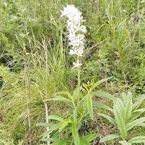 草本。根状茎横走,茎直立,圆柱形,基部紫红色。叶互生,无柄,披针形。总状花序顶生,花冠白色。