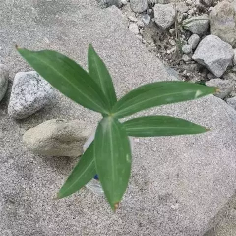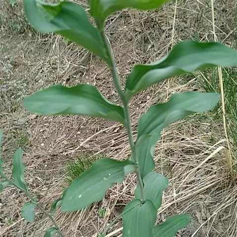 根状茎细圆柱形,直径3-5毫米。茎高20-50厘米,具4-7叶。叶互生,卵形、卵状椭圆形至矩圆状椭圆形,长5-10厘米,先端短渐尖,下部的具短柄,上部的近无柄。